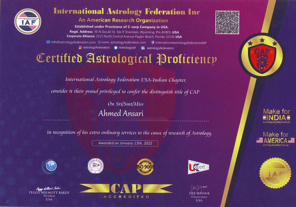Highly respected muslim astrologer Ahmed Ansari, known for his dedication to helping people lead better lives through astrology.